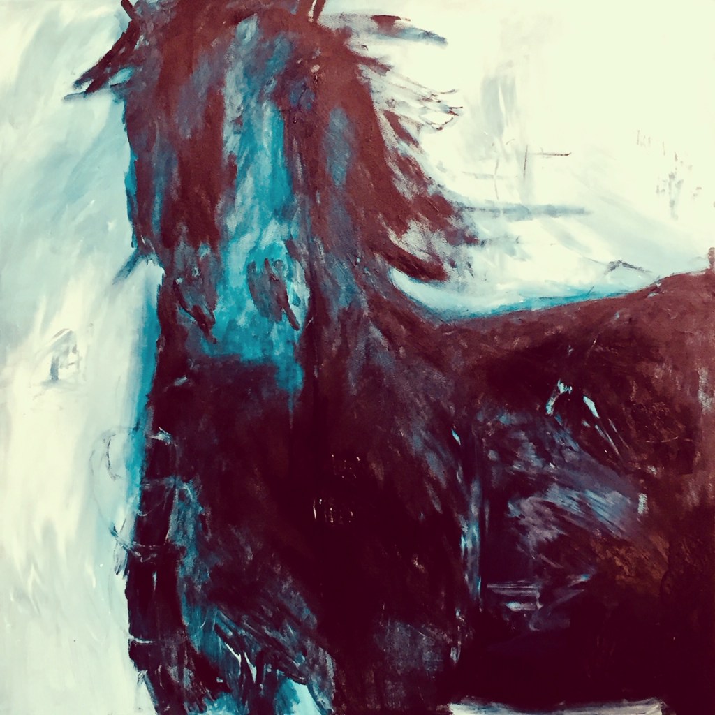 I procrastinate a lot. I’m petrified of a new work. If its blank, I like it as I can see the building and the anticipation of going in there and making the first mark. It is really exciting, but I’m tempted to put it off. I walk in the forest with my dog to clear my mind and find my opening. I found I paint better after 11am, and then I just focus on it. I tend to paint something very solid to get rid of the white first. Sometimes I tape my brushes onto a long stick so I remove myself from the piece, just throw some paint at it and just smear all together, as most of the time I don’t have a structured plan of what I’m going to do.