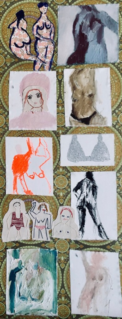 There is an exhibition called Power, Place and Desire at the Margaret River Gallery, a small group show. I’m doing some figurative work of women, one is called Pin-ups, and the other it is a portrait of me painted on a 1950’s wall paper. Originally I was nude, but lately I decided to cover with a bikini and its called Off To The Shops. The work is about women in all their shapes and glory, and little nudes.
